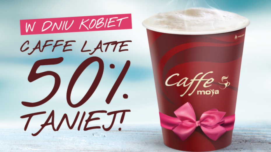 8 marca, z okazji Dnia Kobiet, każdy Klient Caffe Moya otrzyma 50% rabat na aromatyczną kawę latte!