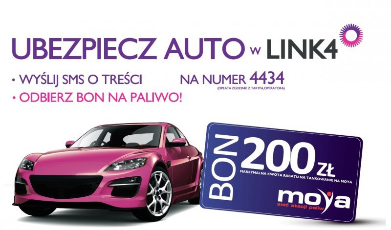 Klient stacji MOYA, który w ten sposób zawrze umowę z LINK4, otrzyma bon na paliwo o wartości od 50 do 200 zł (w zależności od wartości wykupionego ubezpieczenia).