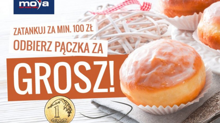 Każdy klient, który w Tłusty Czwartek zatankuje na dowolnej stacji MOYA za minimum 100 zł, delektować będzie się świeżym pączkiem z konfiturą.