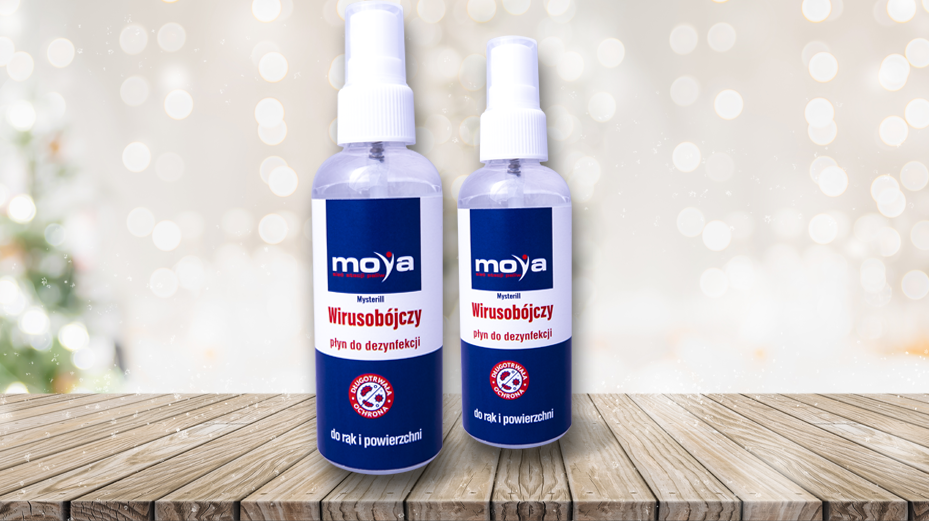 Płyny odkażające są dziś nieodłącznym produktem, który chcemy mieć w domu, w samochodzie i w podręcznej torebce. Dziś jest to niemal produkt pierwszej potrzeby. Płyn wirusobójczy MOYA jest na bazie chlorków benzalkoniowych. Oznacza to, że jest skutecznym środkiem do dezynfekcji rąk i powierzchni oraz przedmiotów i urządzeń mających kontakt żywnością. Jest w pełni bezpieczny dla ludzi i otoczenia – ma niewyczuwalny zapach, jest niepalny i nietoksyczny. Kolejną, bardzo ważną zaletą jest jego wyjątkowo długie działanie, nawet do kilku godzin. Zwalcza skutecznie bakterie, wirusy i grzyby. Występuje w poręcznych, kieszonkowych buteleczkach.
