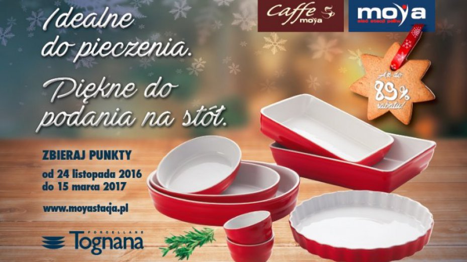 Specjalnie przygotowana na potrzeby promocji oferta Tognana obejmuje: owalne naczynia do zapiekania w trzech rozmiarach (21, 28 i 33 cm), prostokątne naczynia do zapiekania w dwóch rozmiarach (28 i 33 cm), formę do tarty oraz zestaw dwóch foremek. Rabat można wykorzystać na stacjach MOYA, które w czasie promocji będą oferowały produkty z kolekcji Tognana w pełnej cenie detalicznej.